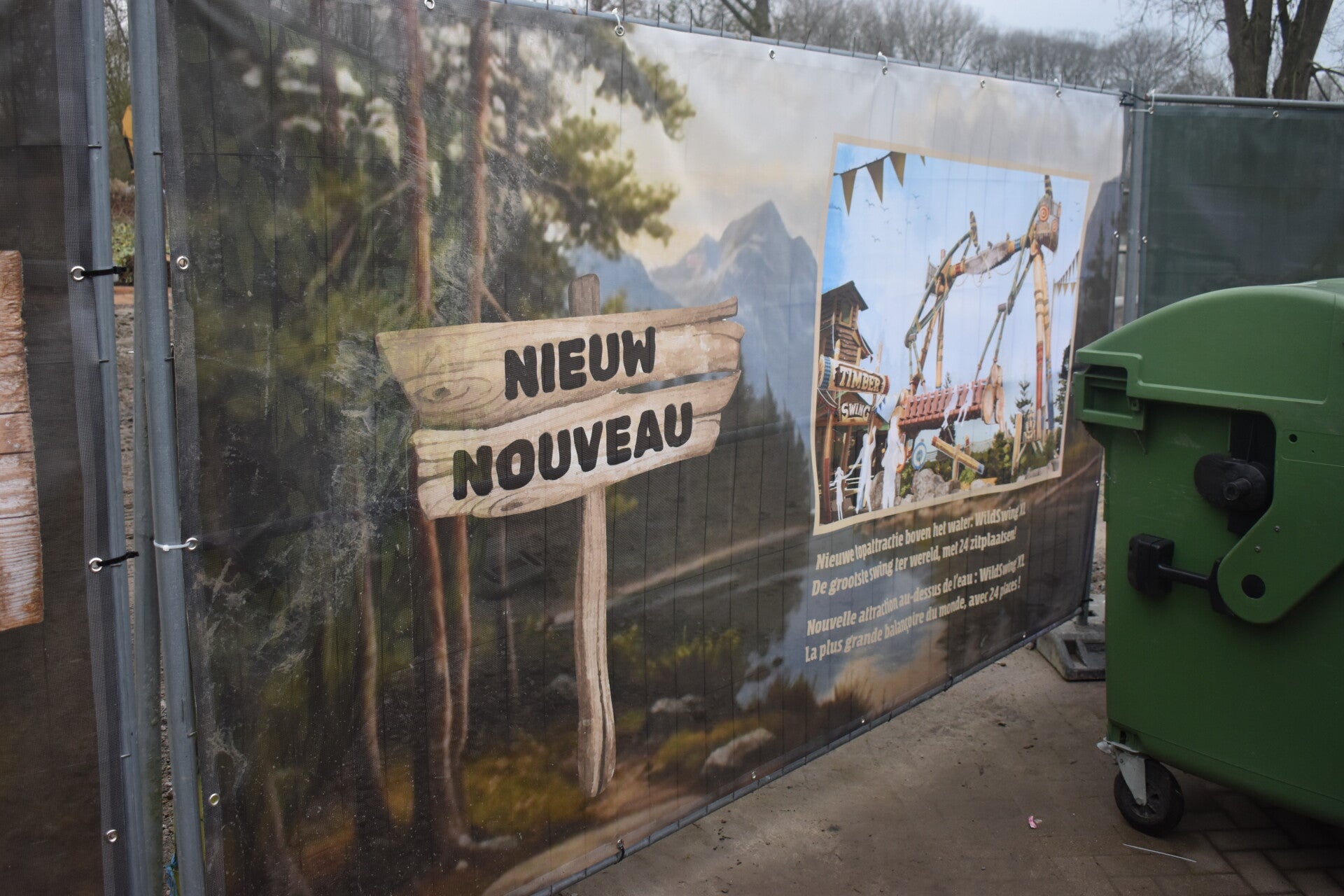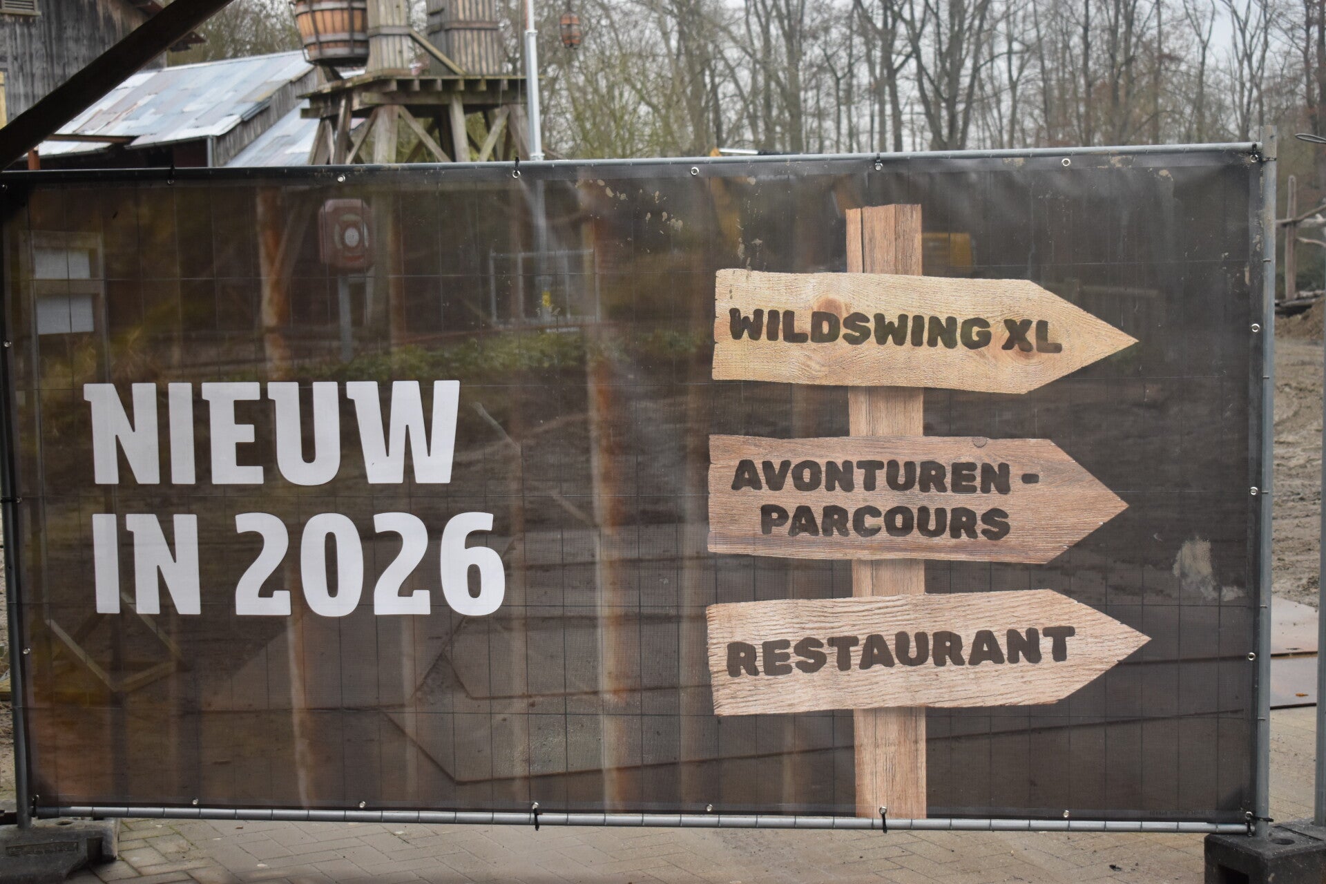 Tot slot gingen we ook eens een kijkje nemen op de werf van de vernieuwde Canada zone. Waar in 2026 een nieuw restaurant komt en daarbij een hindernis parcours en wat zeker niet mag vergeten worden een splinsternieuwe attractie de wildswing XL.
